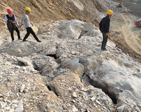選擇二氧化碳致裂讓他們更加得心應手,而且因為不受時間以及其他因素的限制,施工效率大大提高,而且安全上更有保障,本產品無振動波、無飛石操作程序簡單。現在他們的布孔間距是3.5*3.5*5.5米致裂松動后用490型的炮機再進行二次改小。每天他們使用平均80支致裂管出方量大約5500方,最多時候有一次致裂130支管。